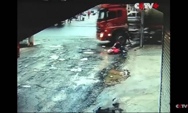 Δύο κορίτσια στην Κίνα, γλίτωσαν από θαύμα, δίχως μάλιστα σοβαρά τραύματα, όταν νταλίκα τα παρέσυρε την ώρα που διέσχιζαν τον δρόμο.