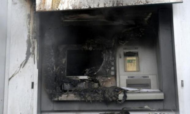 Η πυροσβεστική υπηρεσία κλήθηκε για την εκδήλωση φωτιάς στα δύο ΑΤΜ λίγο μετά τις 3.30 τα ξημερώματα.