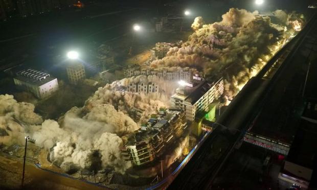 Το κάθε κτίριο είχε μεταξύ 7 και 12 ορόφων και όλα μετατράπηκαν σε ερείπια πριν τα μεσάνυχτα, το Σάββατο, στην Χανκόου της επαρχίας Χουμπέι.