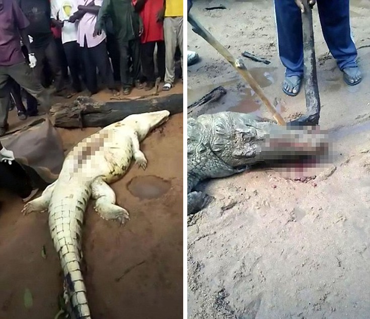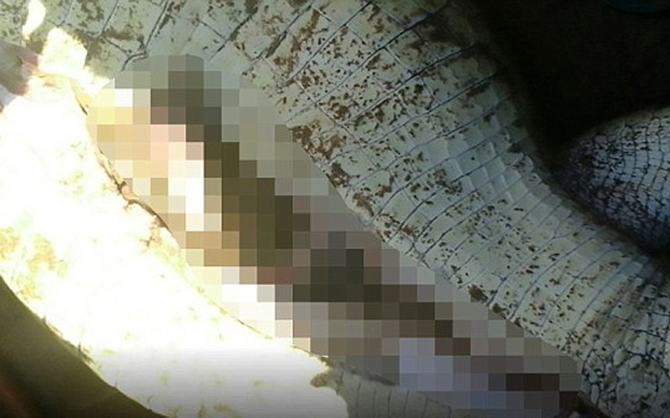 Στο ανατριχιαστικό βίντεο φαίνονται οι άνδρες που ανοίγουν την κοιλιά του κροκόδειλου, βγάζουν από μέσα ανθρώπινα μέλη και τα τοποθετούν σε μία κουβέρτα δίπλα στο νεκρό ζώο.