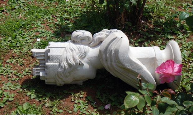 Σύμφωνα με πληροφορίες, η μαρμάρινη προτομή δεν έχει υποστεί ζημιές λόγω της πτώσης της σε χωμάτινη επιφάνεια.