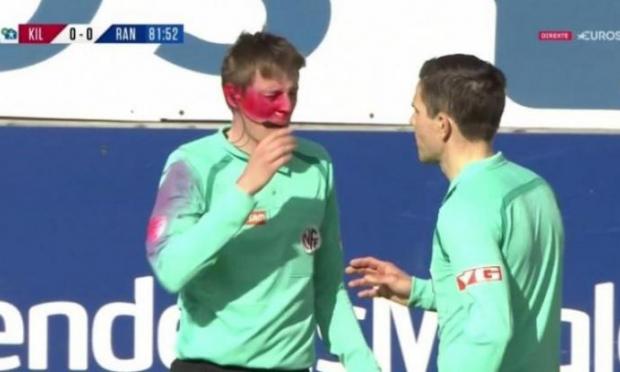 Οπαδός έβαψε τον επόπτη με σπρέυ σε αγώνα ποδοσφαίρου (βίντεο)