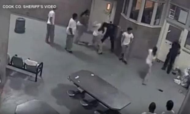 Τον άγριο ξυλοδαρμό δύο ανδρών της ομάδας ασφαλείας σε φυλακή του Σικάγο, από ομάδα φυλακισμένων, κατέγραψε η κάμερα που βρίσκεται στο εστιατόριο των εγκαταστάσεων.