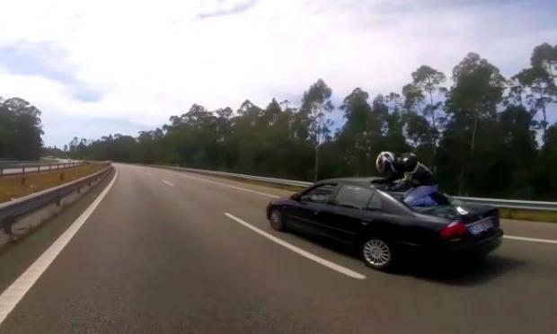 Το ατύχημα συνέβη το περασμένο σαββατοκύριακο στον αυτοκινητόδρομο Α28 της Πορτογαλίας, όπου άγνωστο πως, ο αναβάτης της Suzuki GSXR τράκαρε με προπορευόμενο αυτοκίνητο.
