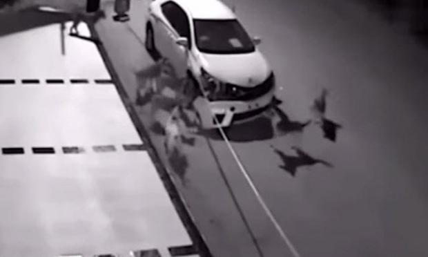 Όπως φαίνεται στις εικόνες αρχικά ένα σκυλί περιτριγυρίζει ένα σταθμευμένο αυτοκίνητο έχοντας εντοπίσει τη γάτα που κρύβεται κάτω από αυτό, έπειτα από λίγο στο σταθμευμένο όχημα φτάνουν και άλλα σκυλιά. Στη συνέχεια κάποια από τα σκυλιά αρπάζουν τον προφυλακτήρα του αυτοκινήτου και τον ξηλώνουν.
