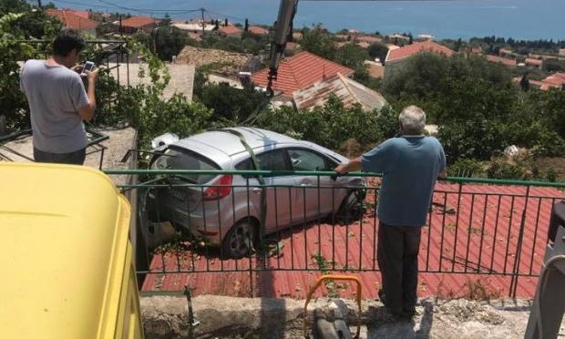 Ένα απίστευτο περιστατικό έλαβε χώρα στον επαρχιακό δρόμο Επανοχωρίου Βλαχάτων στην Κεφαλονιά, όταν η οδηγός έχασε τον έλεγχο του αυτοκινήτου και κατέληξε πάνω σε στέγη.