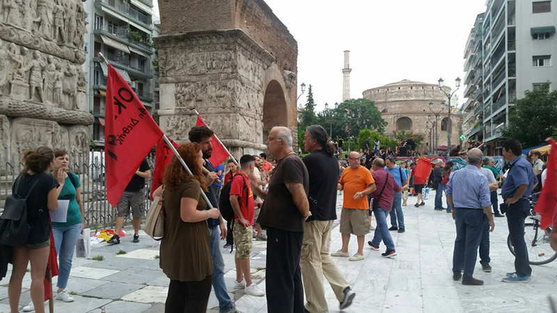 Αντίστοιχη συγκέντρωση πραγματοποιείται στη Θεσσαλονίκη, στην Καμάρα, με κεντρικό σύνθημα «Όχι στην ποινικοποίηση των φρονημάτων και των κοινωνικών σχέσεων».