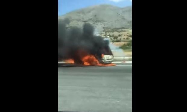 Αυτοκίνητο τυλίχθηκε στις φλόγες, το μεσημέρι του Σαββάτου, στα διόδια Πολυμύλου, στην Εγνατία Οδό.
