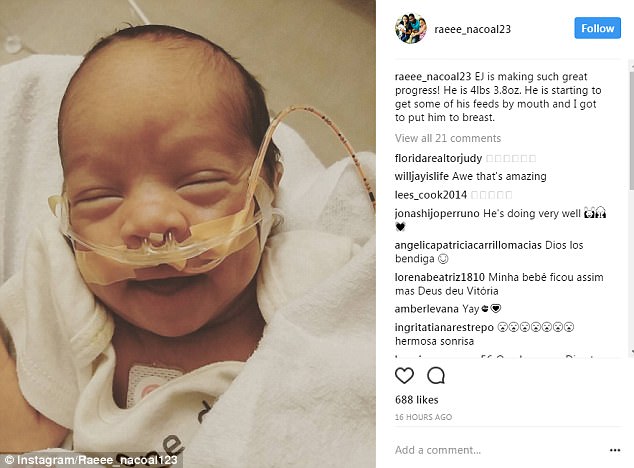 Το ζευγάρι έφτασε στο νοσοκομείο με το προσωπικό να φροντίζει μητέρα και παιδί. Οι γιατροί άνοιξαν τον αμνιακό σάκο με τον μικρό Εαν Τζαμάλ να ζυγίζει μόλις 1,4 κιλά.