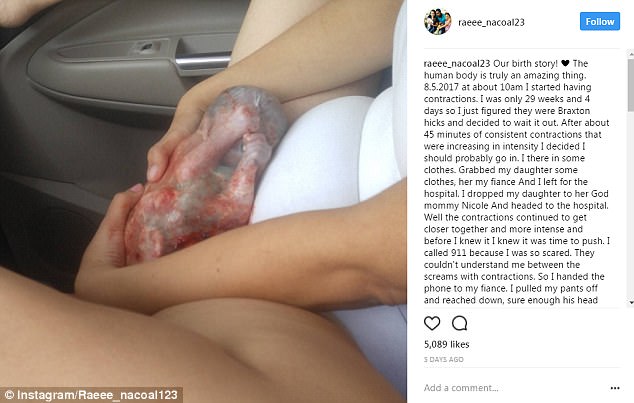 Η Ρέιλι όσο βρισκόταν στον δρόμο προς το νοσοκομείο, κατάλαβε πως γέννησε, καθώς όταν κατέβασε το παντελόνι της ένιωσε το κεφάλι του μωρού ανάμεσα στα πόδια της.