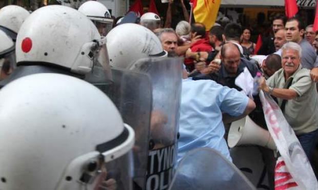 Εκεί, ήρθαν αντιμέτωποι με δυνάμεις της Αστυνομίας, όπου προσπάθησαν να τους εμποδίσουν. Κατά τη διάρκεια της διαδήλωσης τραυματίστηκαν δύο διαδηλωτές και ένας αστυνομικός.