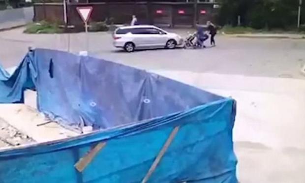 Όπως κατέγραψε ένα βίντεο κλειστού κυκλώματος παρακολούθησης, οι μαμάδες σπρώχνουν τα καροτσάκια σε έναν ήσυχο δρόμο, χωρίς καθόλου κίνηση, στο Βλαδιβοστόκ, στο ανατολικό άκρο της Ρωσίας.