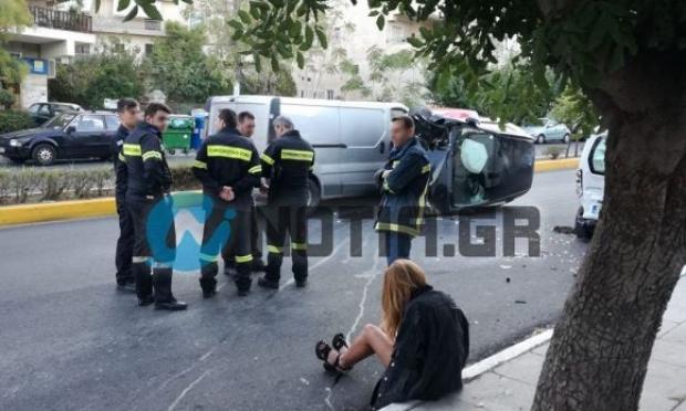 Το τροχαίο σημειώθηκε όταν το όχημα που οδηγούσε μια κοπέλα έπεσε ξαφνικά πάνω σε ένα λευκό βανάκι. Στη συνέχεια βρέθηκε πάνω στη διαχωριστική νησίδα και κατέληξε τουμπαρισμένο στη μέση του δρόμου.