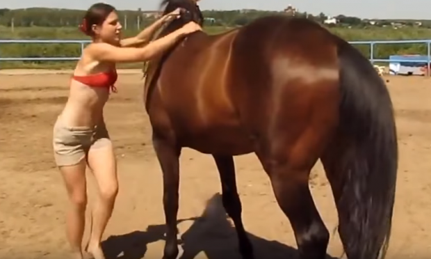 Η γυναίκα που θα δείτε στο παρακάτω βίντεο, επιχειρεί κάτι πολύ δύσκολο. Να ιππεύσει ένα άλογο χωρίς εκείνο να φορά σέλα και αναβολείς.