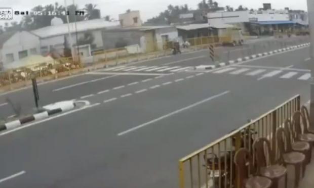 Απίστευτη σύγκρουση αυτοκινήτου με μηχανή σε...άδειο δρόμο (βίντεο)
