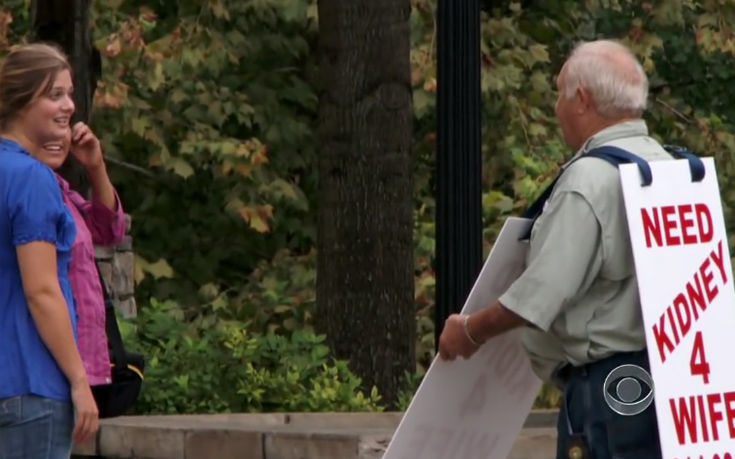 Επειδή βρήκε όμως νεφρό για τη σύζυγό του, αυτό δεν σημαίνει πως θα σταματήσει τις καθημερινές του βόλτες με την πινακίδα: «Θα περάσω κι άλλες μέρες μου κυκλοφορώντας με την πινακίδα για να δω πόσους περισσότερους μπορώ να βρω. Σκεφτείτε το, μπορούμε να ξεκινήσουμε μια επανάσταση νεφρών, κι αυτό θα είναι κάτι μεγάλο»…