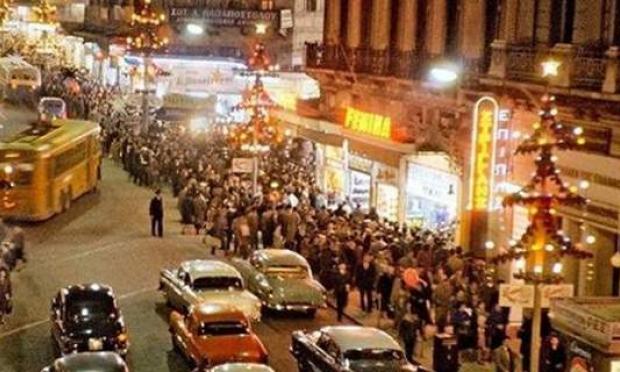 Ο κόσμος συνέρρεε στους εμπορικούς δρόμους της Σταδίου, της Πανεπιστημίου και της Ακαδημίας και τα μεγάλα πολυκαταστήματα μόλις είχαν κάνει την εμφανισή τους. Ηταν η εποχή του Μινιόν- του μεγαλύτερου μεγάλου καταστήματος όπως έλεγε η διαφημιση- και του Κατράντζος Σπόρ.