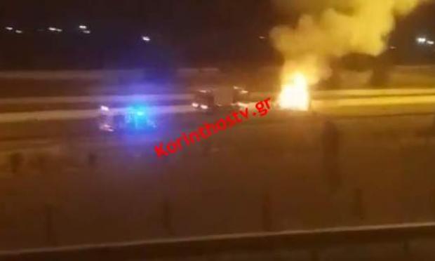 Φωτιά κατέστρεψε ολοσχερώς ΙΧ αυτοκίνητο την ώρα που βρισκόταν εν κινήσει στο 76ο χλμ στην εθνική οδό Αθηνών–Κορίνθου, στον Ισθμό της Κορίνθου.