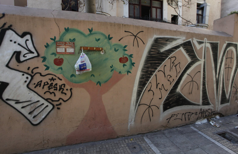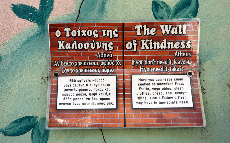 Ο τοίχος, λοιπόν, με τις πολλές ζωγραφιές και γκράφιτι είναι «ο τοίχος της...καλοσύνης» και μία πινακίδα που υπάρχει καρφιτσωμένη σε αυτόν το αποδεικνύει.