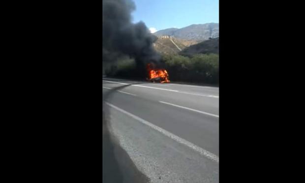 Από θαύμα γλίτωσε ο οδηγός ενός αυτοκινήτου που πήρε φωτιά ενώ βρισκόταν σε κίνηση, στην εθνική οδό Ηρακλείου – Ρεθύμνου στην Κρήτη.