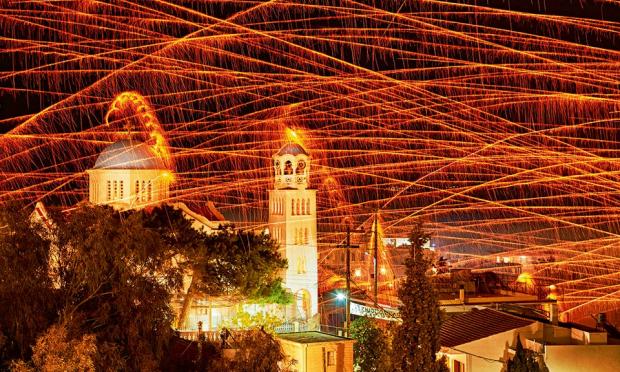 Όπως είναι το έθιμο στο Βροντάδο της Χίου, το βράδυ της Ανάστασης χιλιάδες βεγγαλικά εκτοξέυονται και μας προσφέρουν απίστευτες εικόνες!