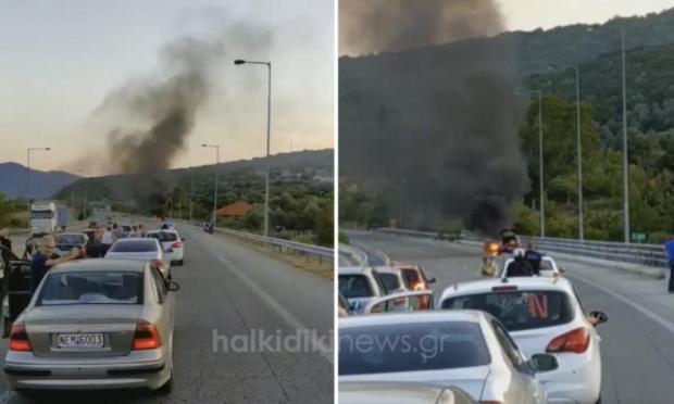 Επιβατικό ΙΧ τυλίχθηκε στις φλόγες στις 8.30 περίπου το απόγευμα στην Εγνατία οδό, στο ύψος της Ασπροβάλτας.
