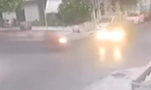 Το αυτοκίνητο έχει αναπτύξει ταχύτητα και η σύγκρουση με τη μηχανή είναι αναπόφευκτη. Δύο οι τραυματίες του τροχαίου, που καταγράφηκε από κάμερες ασφαλείας.