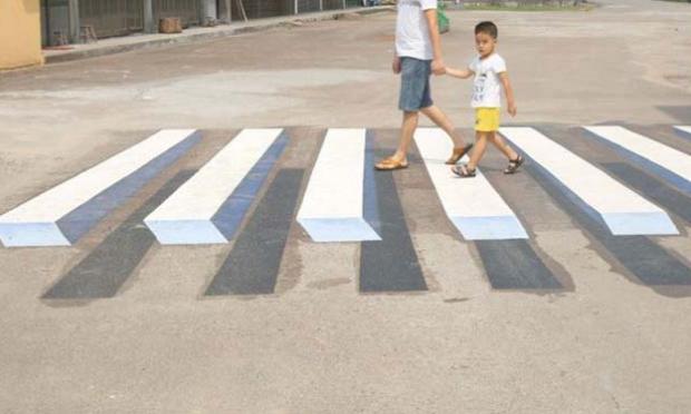 Όπως φαίνεται και στις φωτογραφίες, η κάθε διάβαση μοιάζει να… αιωρείται πάνω από τον δρόμο, δημιουργώντας μια οφθαλμαπάτη που είναι ορατή από τους οδηγούς αυτοκινήτων, με στόχο να μειώνουν ταχύτητα πλησιάζοντας στα σχολεία. Την ιδέα αυτή έχουν υλοποιήσει αρκετοί φορείς οδικής ασφάλειας σε διάφορες χώρες ανά τον κόσμο σημειώνοντας θετικά αποτελέσματα όπου εφαρμόστηκαν.