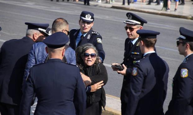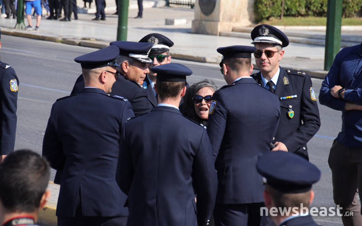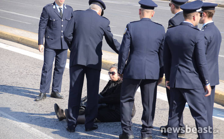 Αστυνομικοί προσπάθησαν να την απομακρύνουν, όμως αυτή αντιστάθηκε κι αποφάσισε να καθίσει στο έδαφος.