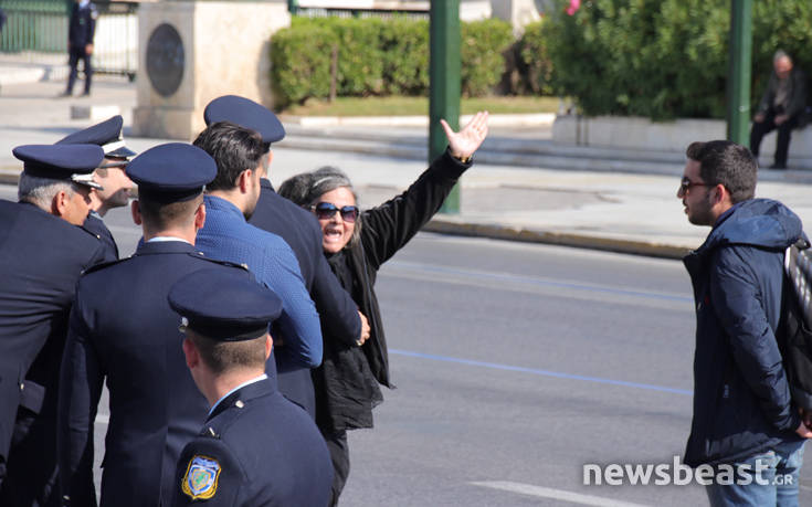 Η Ελένη Λουκά βρέθηκε από νωρίς στο κέντρο της πρωτεύουσας, φωνάζοντας συνθήματα για την Ελλάδα.