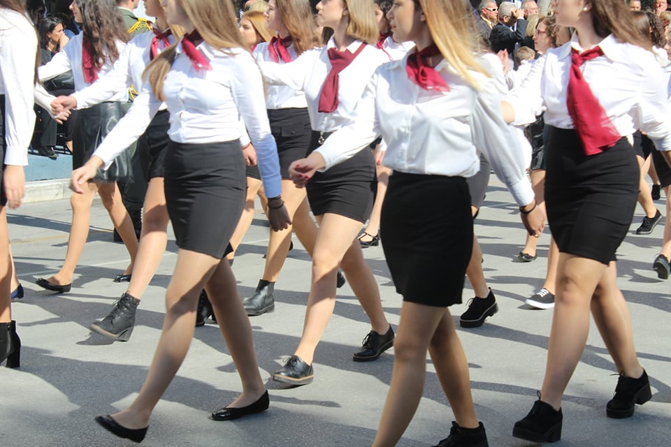 Γυναικείες φούστες μίνι, μίντι, μάξι, ψηλόμεσες, δερμάτινες, κλος, στενές, φαρδιές είχαν την τιμητική τους σήμερα στη μαθητική παρέλαση της 28ης Οκτωβρίου.