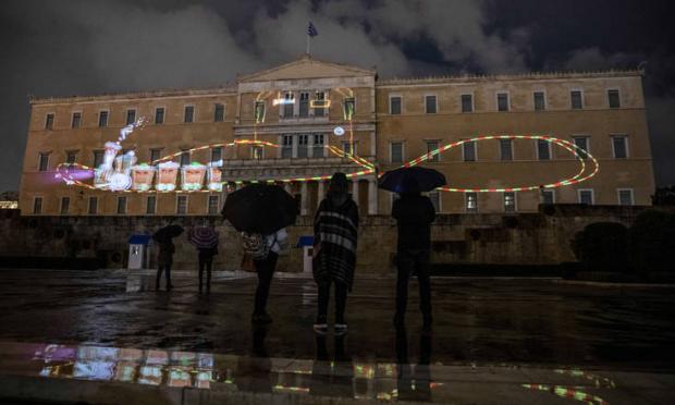 Ένας Άγιος Βασίλης που κατεβαίνει με τον σάκο του από το ιστορικό κτήριο της Βουλής. Μολυβένιοι στρατιώτες, καρουζέλ, η λέξη «Χριστούγεννα», τα πλήκτρα ενός πιάνου ήταν μόνο μερικές από τις λαμπερές εικόνες που «έντυσαν» χτες το Κοινοβούλιο, κατά την τελετή φωταγώγησης του Χριστουγεννιάτικου δέντρου του δήμου Αθηναίων.