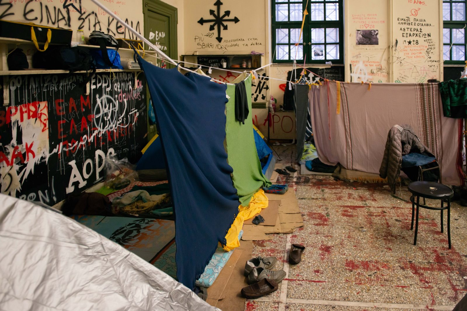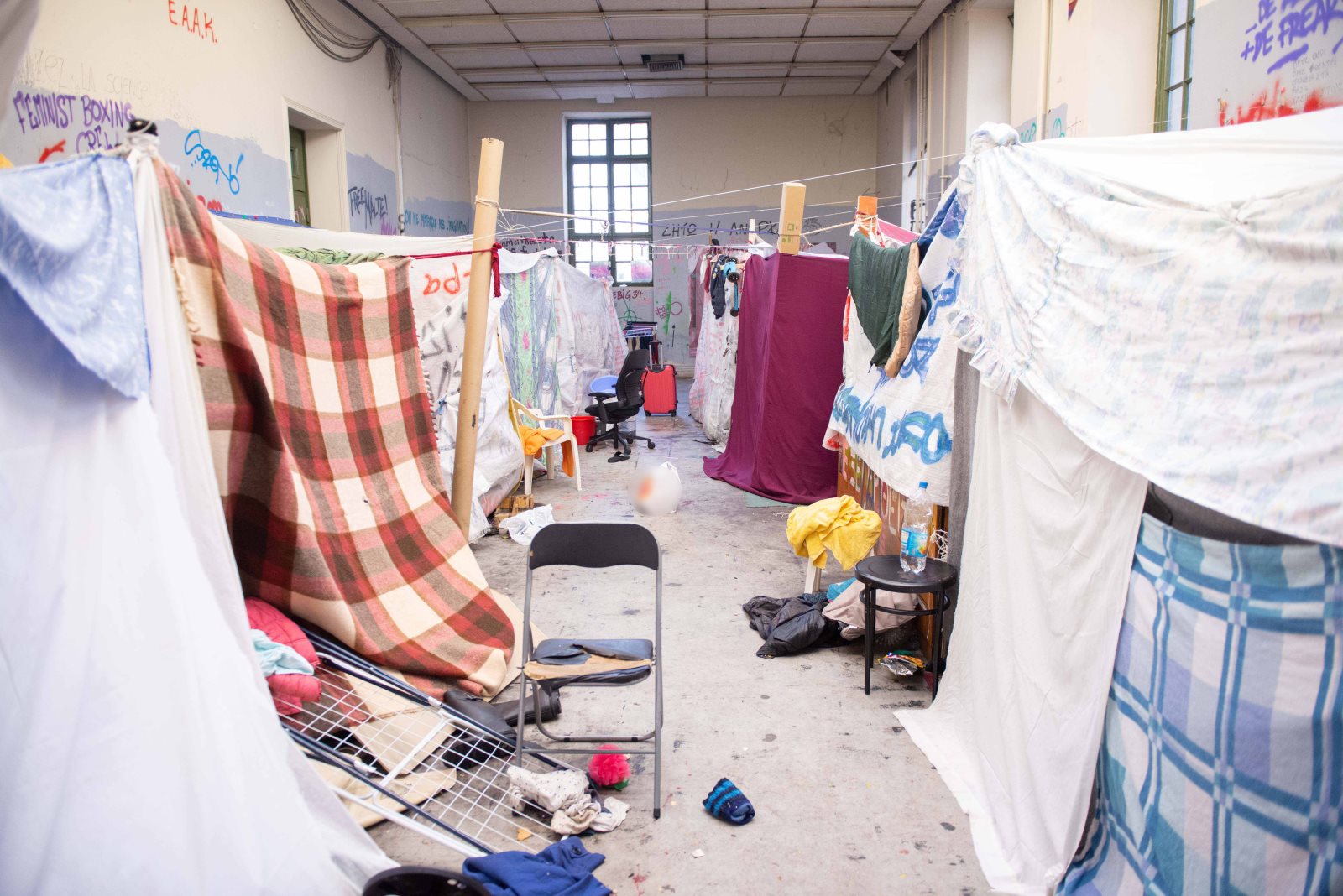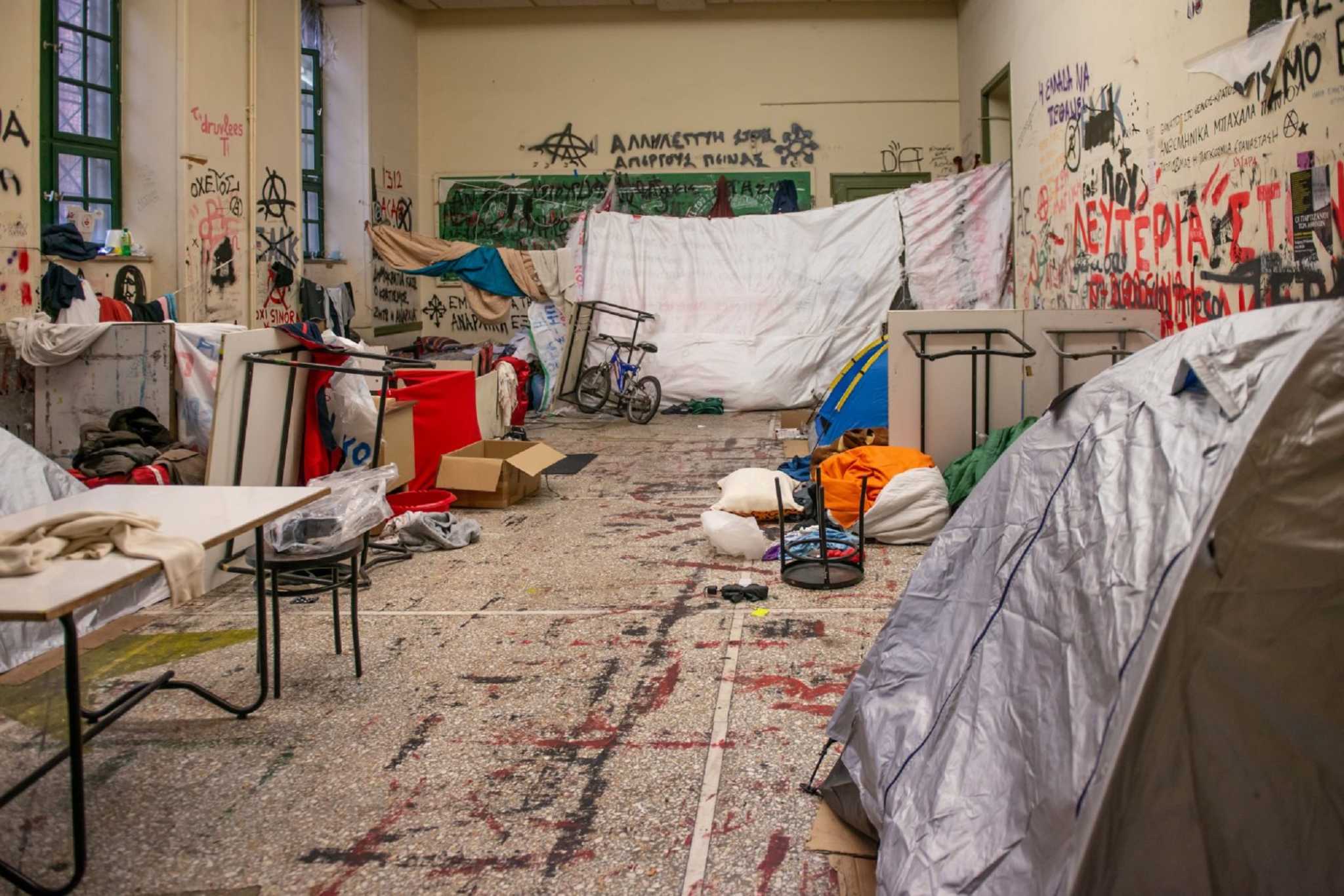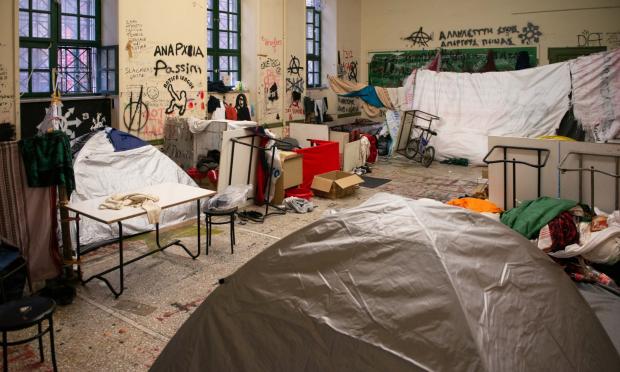 Οι αστυνομικοί εκκένωσαν την αίθουσα Γκίνη στο Πολυτεχνείο, στους χώρους της οποίας διέμεναν 85 αλλοδαποί παρά τη θέληση της Πρυτανείας του Πανεπιστημιακού Ιδρύματος.