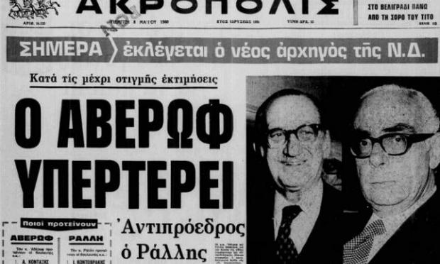 Πριν 40 χρόνια η ελληνική Δημοκρατία μετρούσε έξι χρόνια ζωής όπως και η Νέα Δημοκρατία. Ο Κωνσταντίνος Καραμανλής είχε εκλεγεί Πρόεδρος της Δημοκρατίας και το κόμμα που είχε ιδρύσει αναζητούσε νέο αρχηγό που θα ανέκοπτε την πορεία του ΠΑΣΟΚ προς την εξουσία.