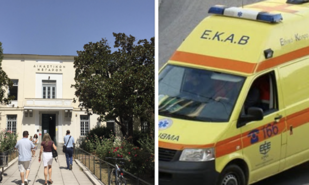Ο κατηγορούμενος τραυματίστηκε ελαφρά στο κεφάλι, ενώ το πλήρωμα του ΕΚΑΒ που κλήθηκε και πήγε στα δικαστήρια, έκρινε ότι υπέστη θλαστικό κεφαλής και δεν απαιτούνταν η μεταφορά του στο Νοσοκομείο.