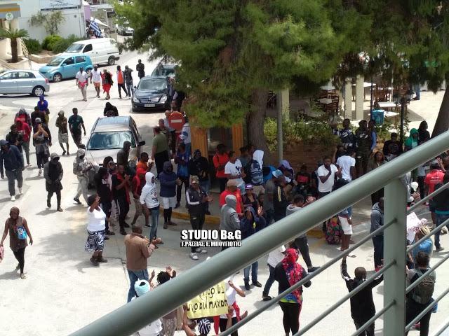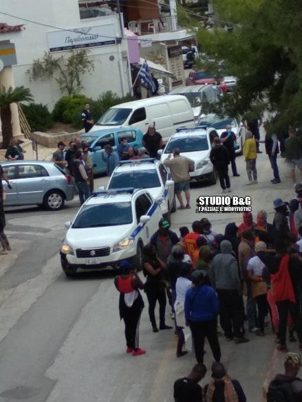 Οι αλλοδαποί παρέκαμψαν τον αστυνομικό κλοιό και πραγματοποίησαν πορεία φτάνοντας έξω από το αστυνομικό τμήμα στο Πόρτο Χέλι.