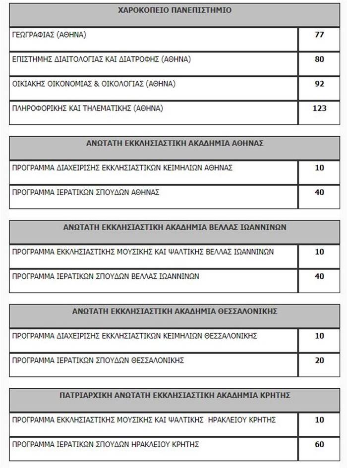 Αναλυτικά ο αριθμός εισακτέων ανά Ίδρυμα, Σχολή, Τμήμα και Εισαγωγική Κατεύθυνση Τμημάτων για το ακαδημαϊκό έτος 2020-2021 καθορίζεται όπως θα δείτε παρακάτω στις εικόνες: