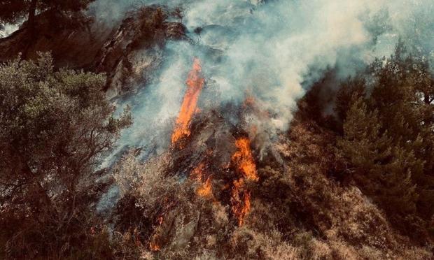 Σύμφωνα με τις πρώτες εκτιμήσεις, η πυρκαγιά έκαψε σχεδόν 3 στρέμματα δασικής έκτασης, ενώ έφτασε σχεδόν στην αυλή σπιτιού που βρίσκεται πάνω από την εκκλησία του Αγίου Σπυρίδωνος.