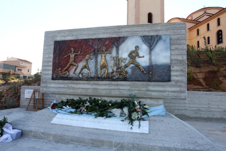 Πλήθος κόσμου συγκεντρώθηκε έξω από τον ναό του Αγ. Ιωάννη στο Νέο Βουτζά, όπου λίγο μετά τις 7 το απόγευμα πραγματοποιήθηκαν τα αποκαλυπτήρια του μνημείου των θυμάτων της πυρκαγιάς που φιλοτέχνησε ο γλύπτης, Κώστας Ανανίδας και βρίσκεται στον προαύλιο χώρο της εκκλησίας.