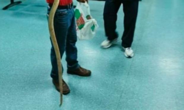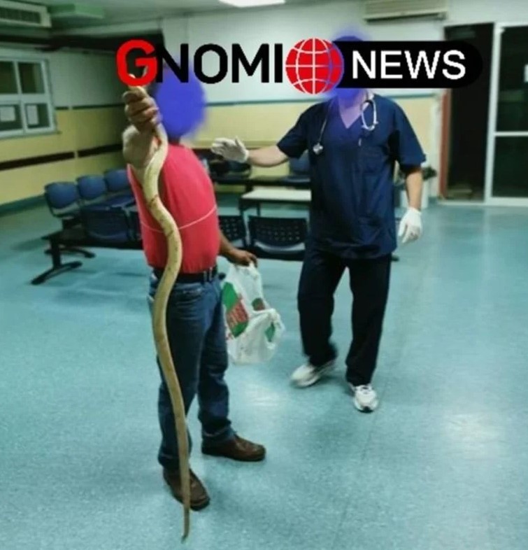 Έτσι, εμφανίστηκε στο νοσοκομείο με ένα φίδι που ξεπερνούσε το 1,5 μέτρο, δείχνοντάς το στους γιατρούς.