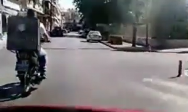 Όπως δείχνει το παρακάτω βίντεο το οποίο έχει γίνει viral τις τελευταίες ημέρες, ο θρασύς οδηγός εξοργίστηκε όταν ο διανομέας με το μηχανάκι του έκοψε τον δρόμο βγαίνοντας από μια στροφή στον κεντρικό δρόμο, χωρίς να έχει προτεραιότητα.