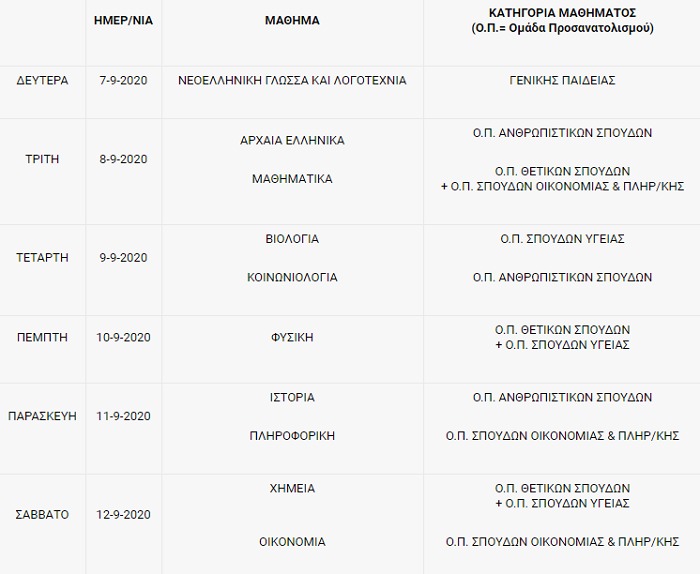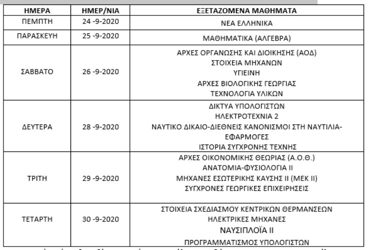 Επιπλέον, η διάρκεια εξέτασης κάθε μαθήματος ορίζεται σε τρεις ώρες.