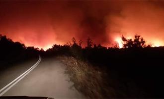 Επιχειρούν 29 πυροσβέστες με 11 οχήματα και δύο αεροσκάφη.