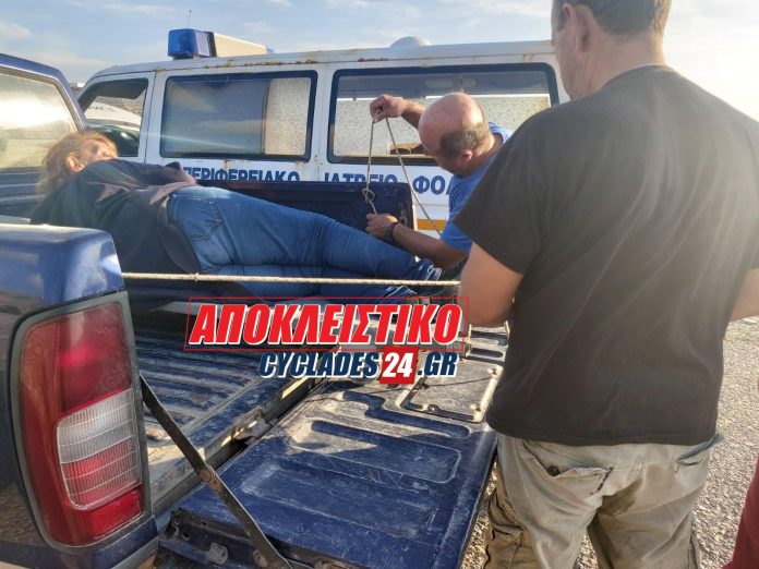 Τότε μεταφέρθηκε με αγροτικό όχημα στο ιατρείο και στη συνέχεια με δεύτερο Ι.Χ. σε νοσοκομείο της Σαντορίνης.