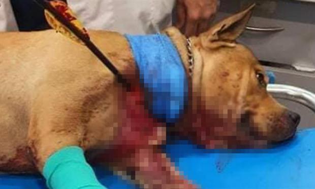 Ο σκύλος ηλικίας μόλις 2,5 ετών ονομαζόταν Μπρούνο και είχε τραυματιστεί πολύ σοβαρά, 2 χιλιοστά μόλις δεξιά από την καρδιά. Νοσηλεύτηκε και χειρουργήθηκε στο Αττικό Νοσοκομείο Ζώων.