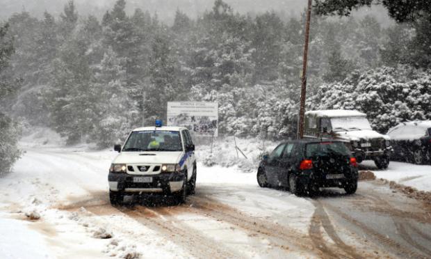 Επίσης, στην Αττική, σύμφωνα με την τελευταία ενημέρωση από την αστυνομία, ώρα 07.20, τα αυτοκίνητα κινούνται μόνο με αντιολισθητικές αλυσίδες στην Παλαιά εθνική οδό Αθήνας- Θήβας, από τον κόμβο Βιλίων μέχρι τα Βίλια και στην οδό Αναστάσεως στου Παπάγου, από το Νεκροταφείο προς τον Υμηττό.