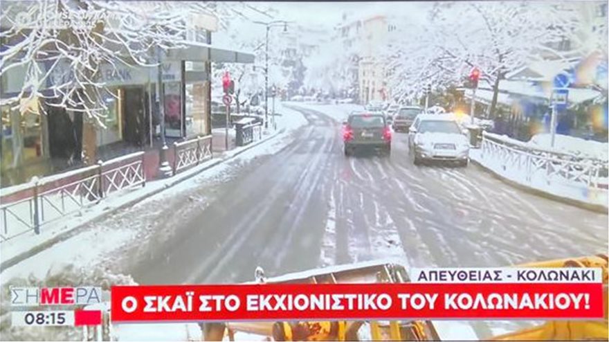 Εκτός από το στρωμένο χιόνι στους δρόμους, σήμερα το πρωί, είδαν να κυκλοφορεί και ένα εκχιονιστικό! Μάλιστα, όπως περιέγραφε ο οδηγός του βαρέος οχήματος στον ΣΚΑΪ, είναι η πρώτη φορά που του συμβαίνει να πρέπει να βρεθεί στους κεντρικούς δρόμους του Κολωνακίου.
