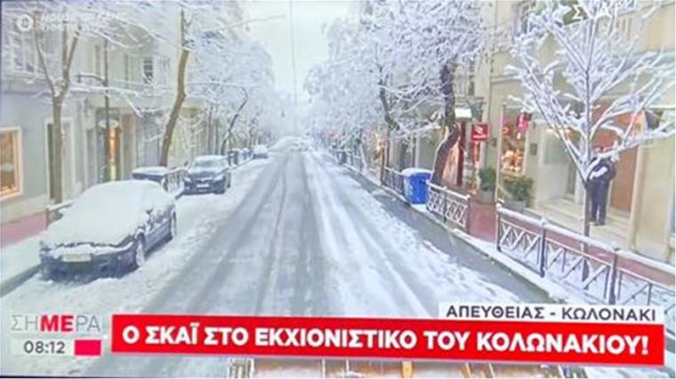 Πρωτόγνωρες εικόνες είδαν οι κάτοικοι στο Κολωνάκι λόγω της κακοκαιρίας που έχει σκεπάσει την χώρα ενώ έχει ντύσει στα λευκά ολόκληρη σχεδόν την Αττική.