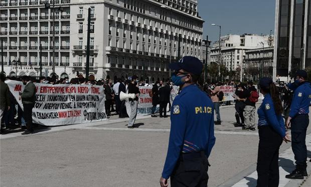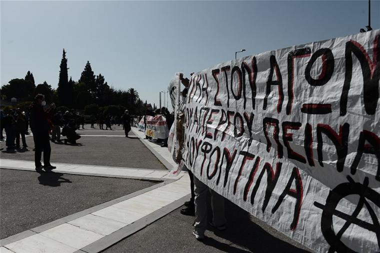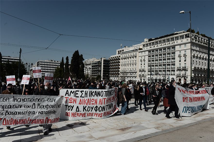 Συγκέντρωση διαμαρτυρίας για τον Δημήτρη Κουφοντίνα, ο οποίος βρίσκεται σε παρατεταμένη απεργία πείνας, πραγματοποιούν μέλη αντιεξουσιαστικών οργανώσεων στο Σύνταγμα.