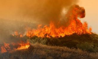 Η φωτιά, που ξέσπασε από άγνωστη μέχρι στιγμής αιτία στις 15.30 περίπου το μεσημέρι, μαίνεται σε δύσβατη έκταση κοντά σε γνωστό ξενοδοχείο.